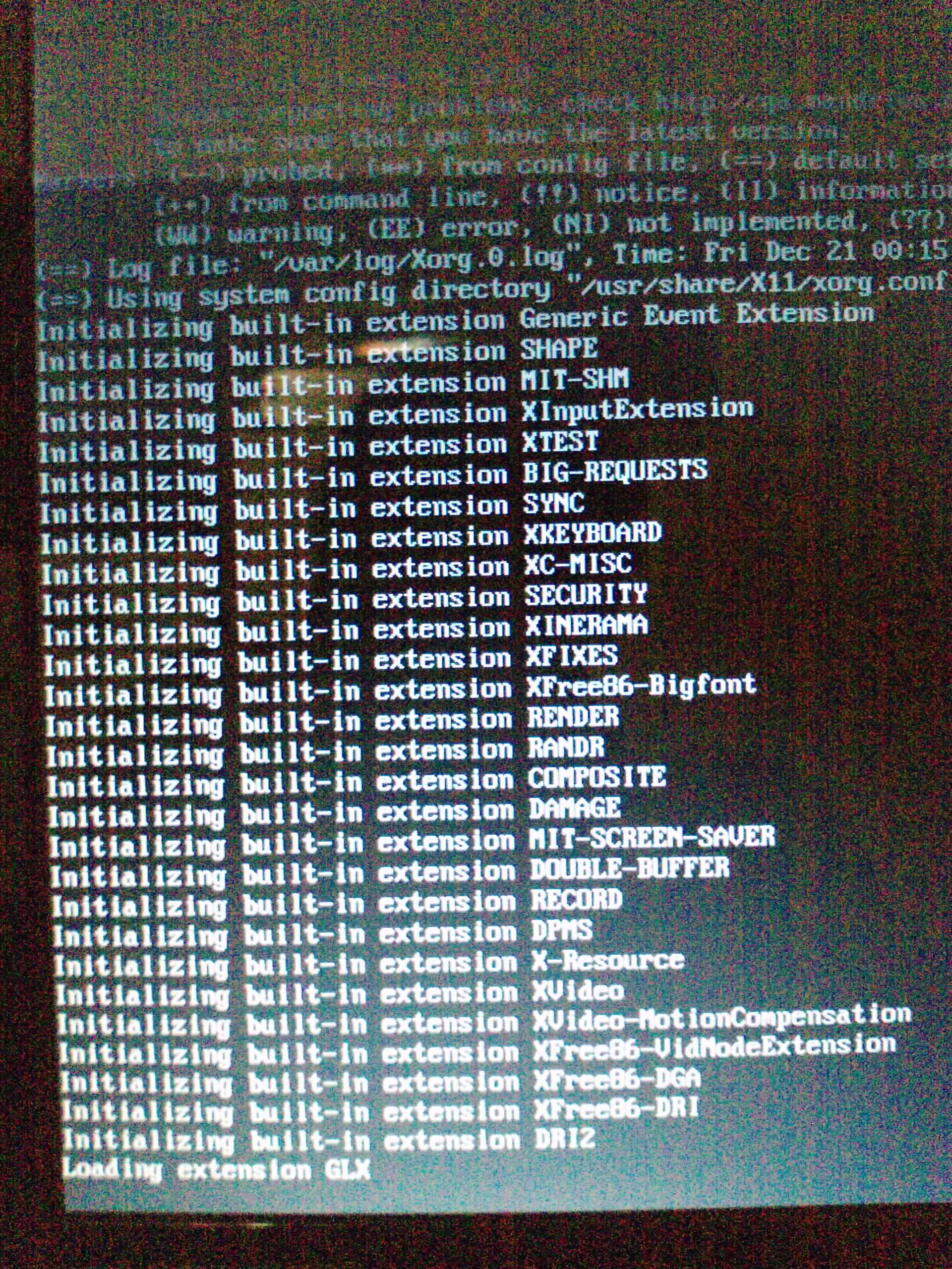 В режиме сингл юзера грузится до иксов и останавливается. Появляется командная строка пишу: startx После этого несколько раз мигает цветными полосами и останавливается.