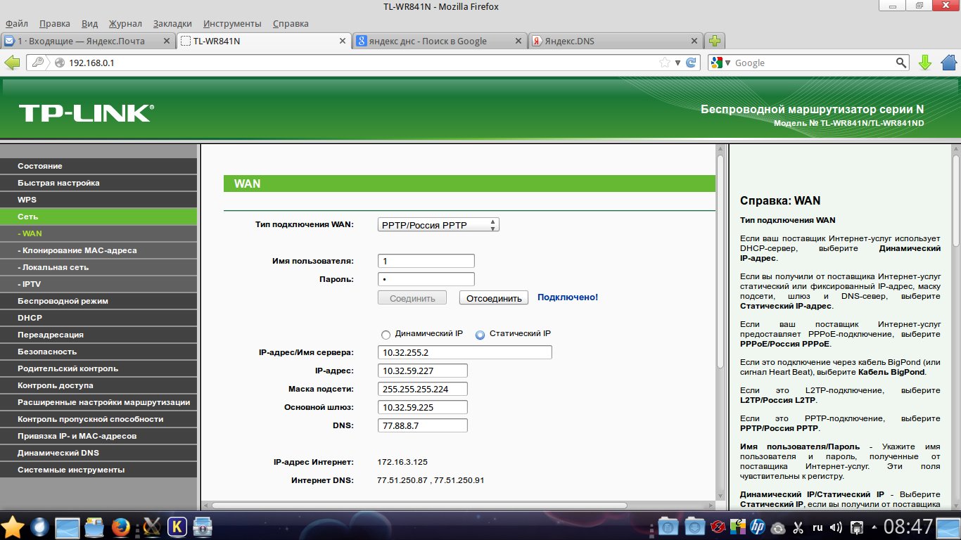 Я ж писал выше, что если поставить в роутере днс яндекса, то после подключения, он (роутер) в панели настроек (статистики) показывает все-равно днс что и без него. Пробовал на tp-link 841.
