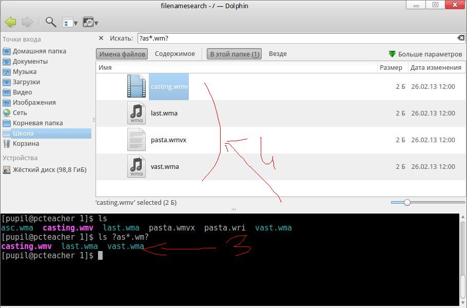 Не понял. Содержание всех файлов одинаковое! Они для тренировки. Разные только имена. Почему показан 3-й файл? Он не удовлетворяет маске.Zeffanyx писал(а):Так и должно быть. ls - листинг по заданному критерию. Поиск - отображение всех объектов, в которых встречается набор символов, определяемый маской.