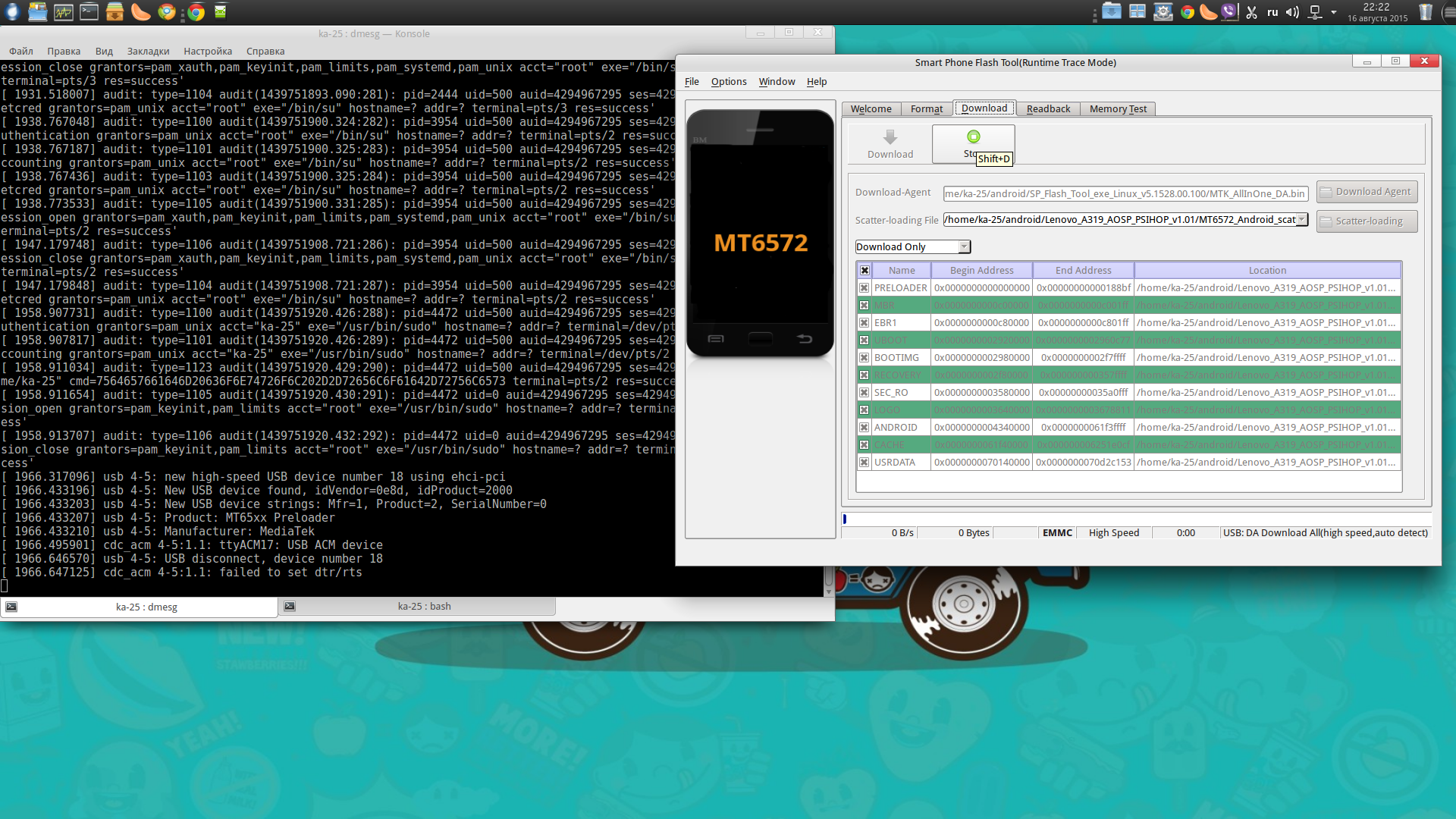 Получил то что писал уважаемый yamah. flash tool не видит тело. И проблема, как я понял в этом :