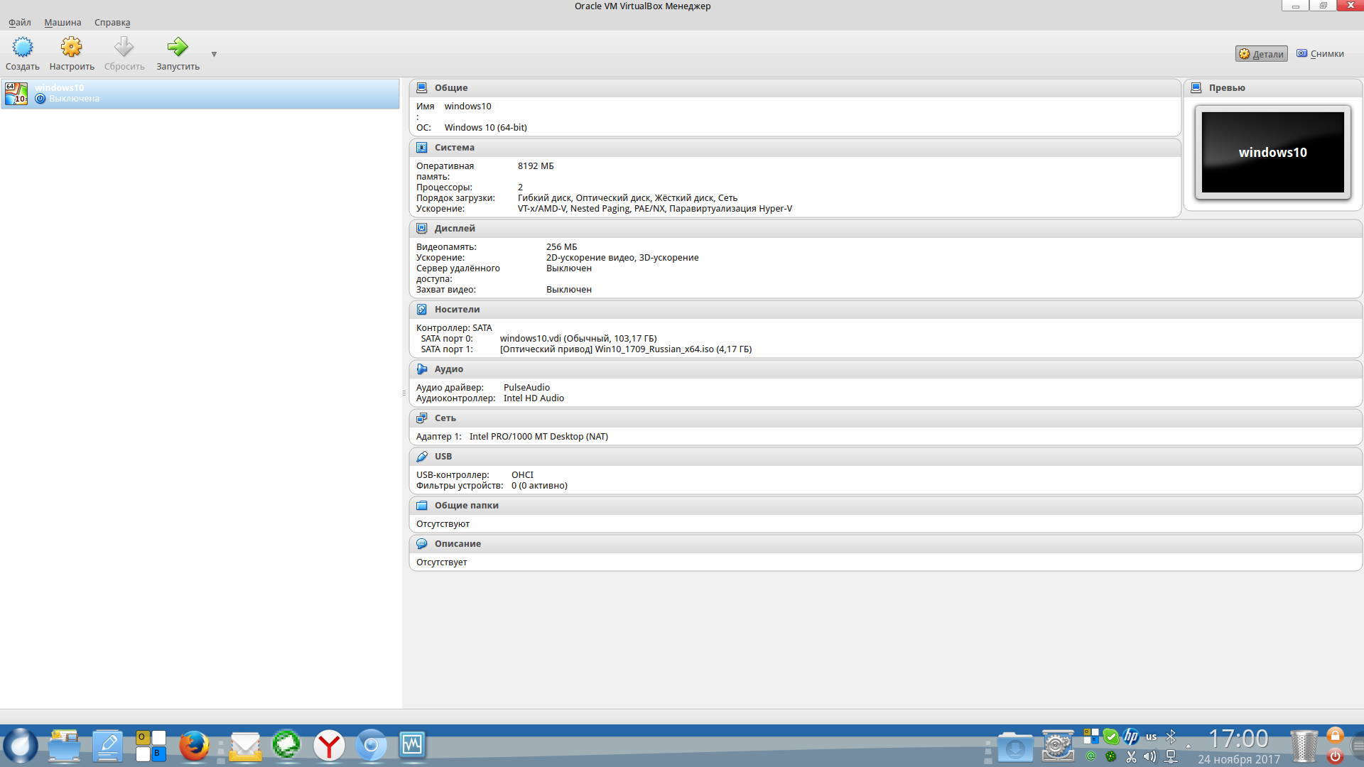 Спасибо! Заработало! Вин10 красиво сделан но я сразу засек утечку. Вин10 отсылает бин-файлы. Поигрался и поставил в бокс вин 7.