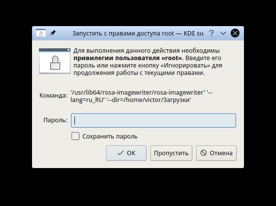 VictorR2007 писал(а): 11 окт 2019, 19:21 На вашей от запроса polkit, а у меня с запроса пароля для рута от программы ROSA Image Writer