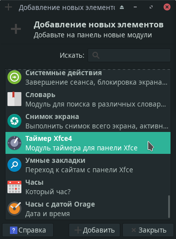 Спасибо, буду пробовать.asa писал(а): 22 дек 2019, 18:09 На панели добавьте новый элемент-таймер xfce4, там в настройках думаю разберетесь.