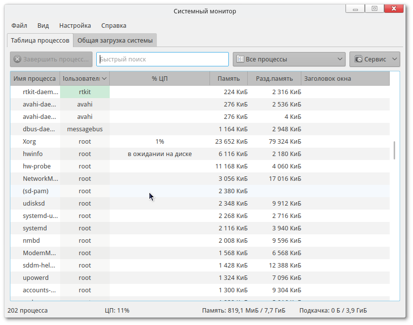 Запускаю "Информация о системе" - все пункты работают, кроме PCI - на нем виснет и в Системном мониторе висит "в ожидании на диске".