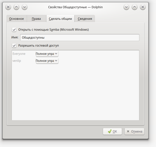 Что надо сделать, чтобы в Dolphin заработало расшаривание папок(Публикация)?