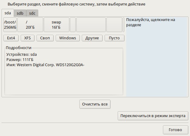 Для Росы сделаю отдельный / (корневой раздел) и отдельный раздел под swap.