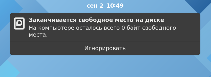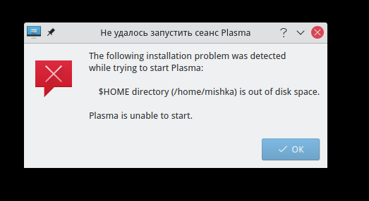 при обновлении система rosa plasma 2021.1 написала "мало места. осталось 0байт"