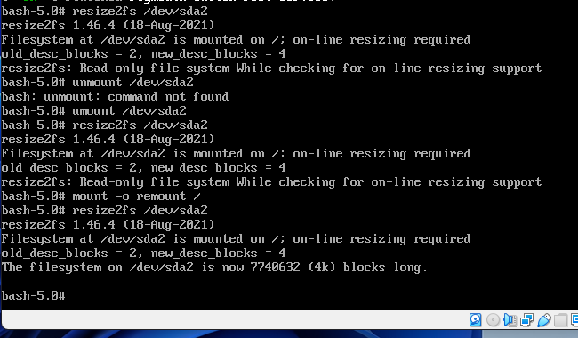 resize2fs /dev/sda2