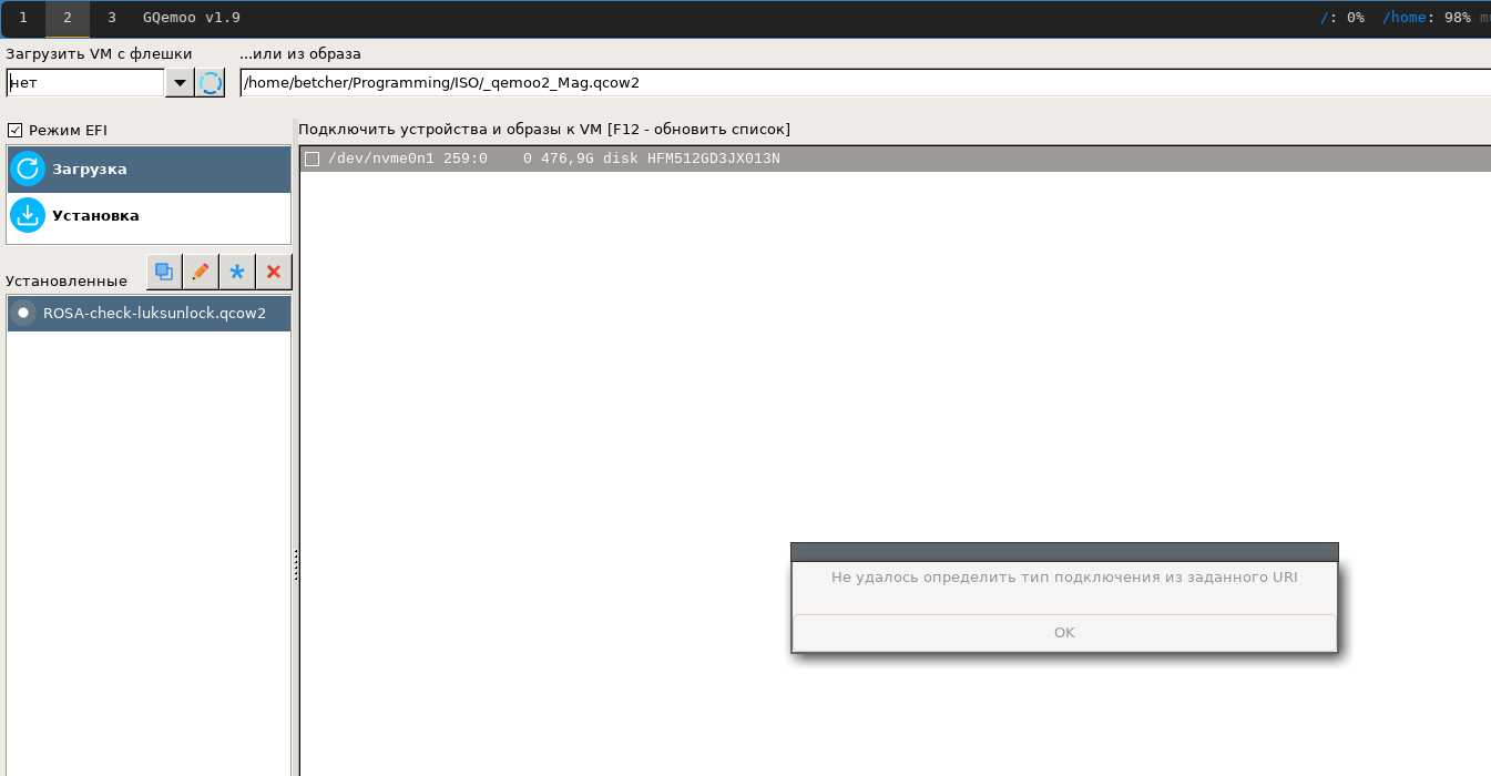 betcher писал(а): 19 янв 2023, 08:59Попробуйте запускать с qcow2 с произвольного каталога. Что-то у меня ругается (