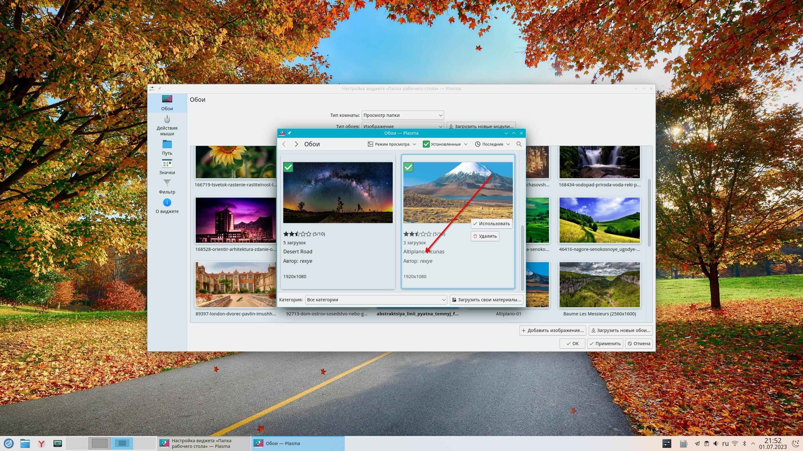 В системном (usr/share/wallpapers/) никаких картинок от этого приложения нет, только в пользовательском (~/.local/share/wallpapers).