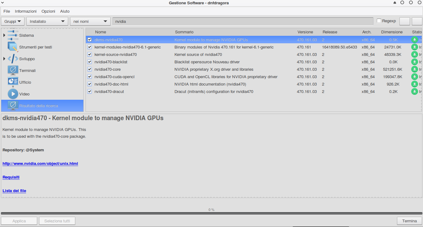 Driver nvidia installati