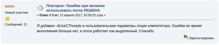 Только не понятно, почему в ubuntu я модуль CThreads ни где ни указывал и всё получалась?