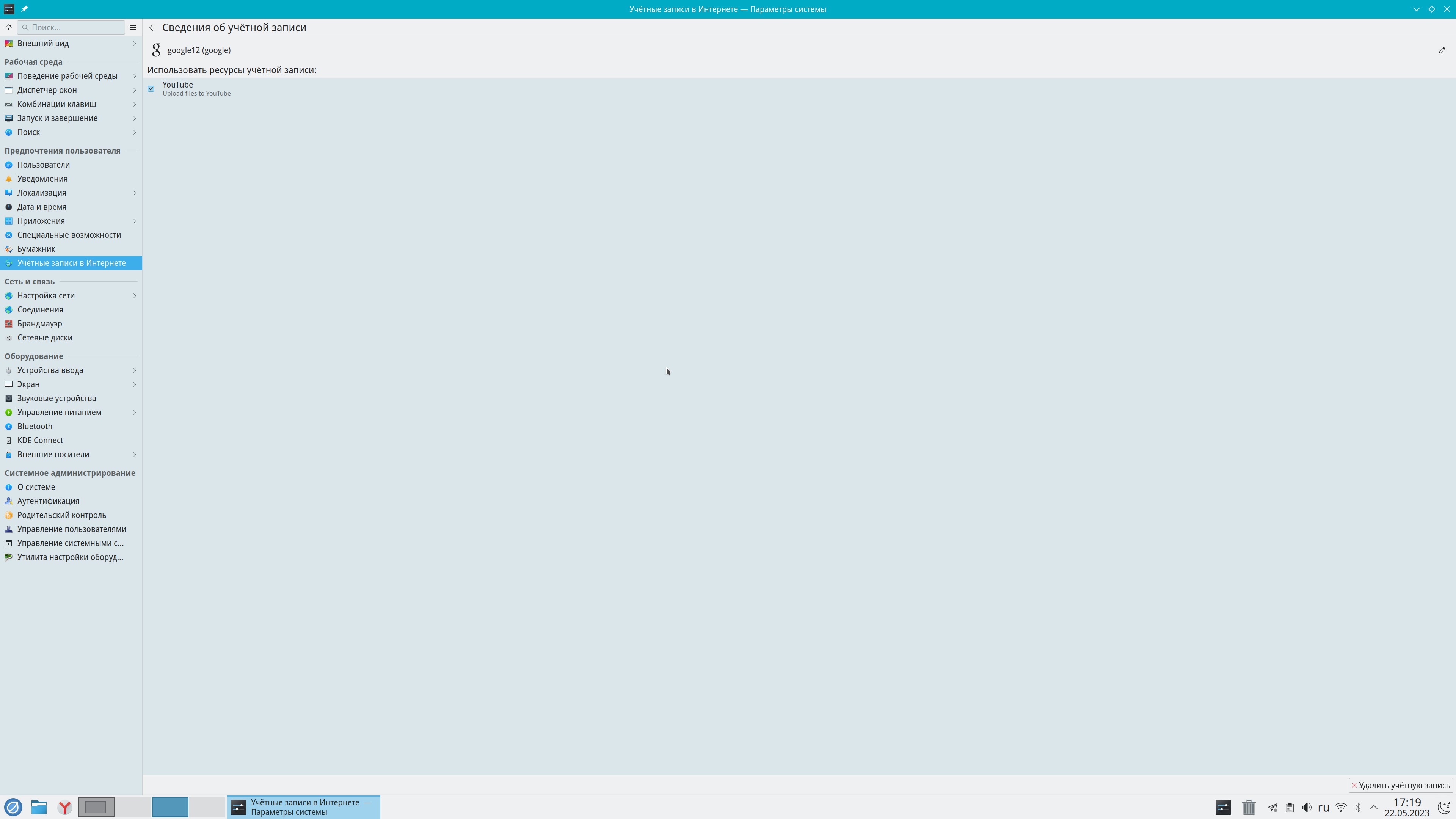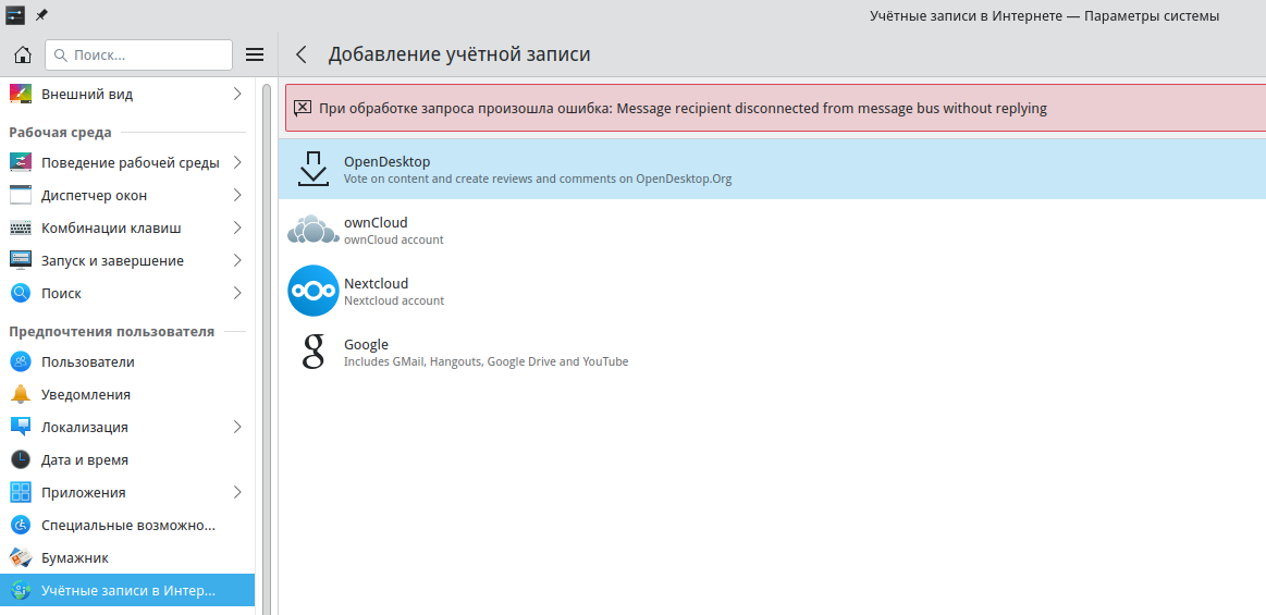 Точнее, так: в настройках KDE в "Учетные записи в Интернете", потом "Добавление учетной записи" действительно теперь есть реальная возможность подключить аккаунт Google, через стандартный OAuth2 интерфейс.