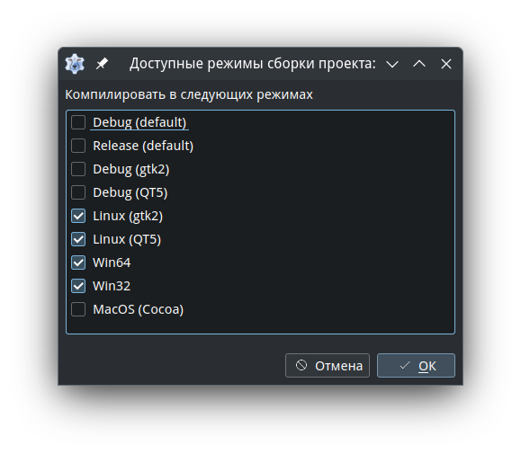 Oberon, у меня так и настроенно. Я собираю сразу под Gtk2, Qt5 и Win32.
