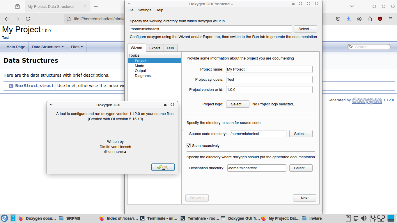 Per Doxygen è stato eseguito questo tutorial senza alcun problema: