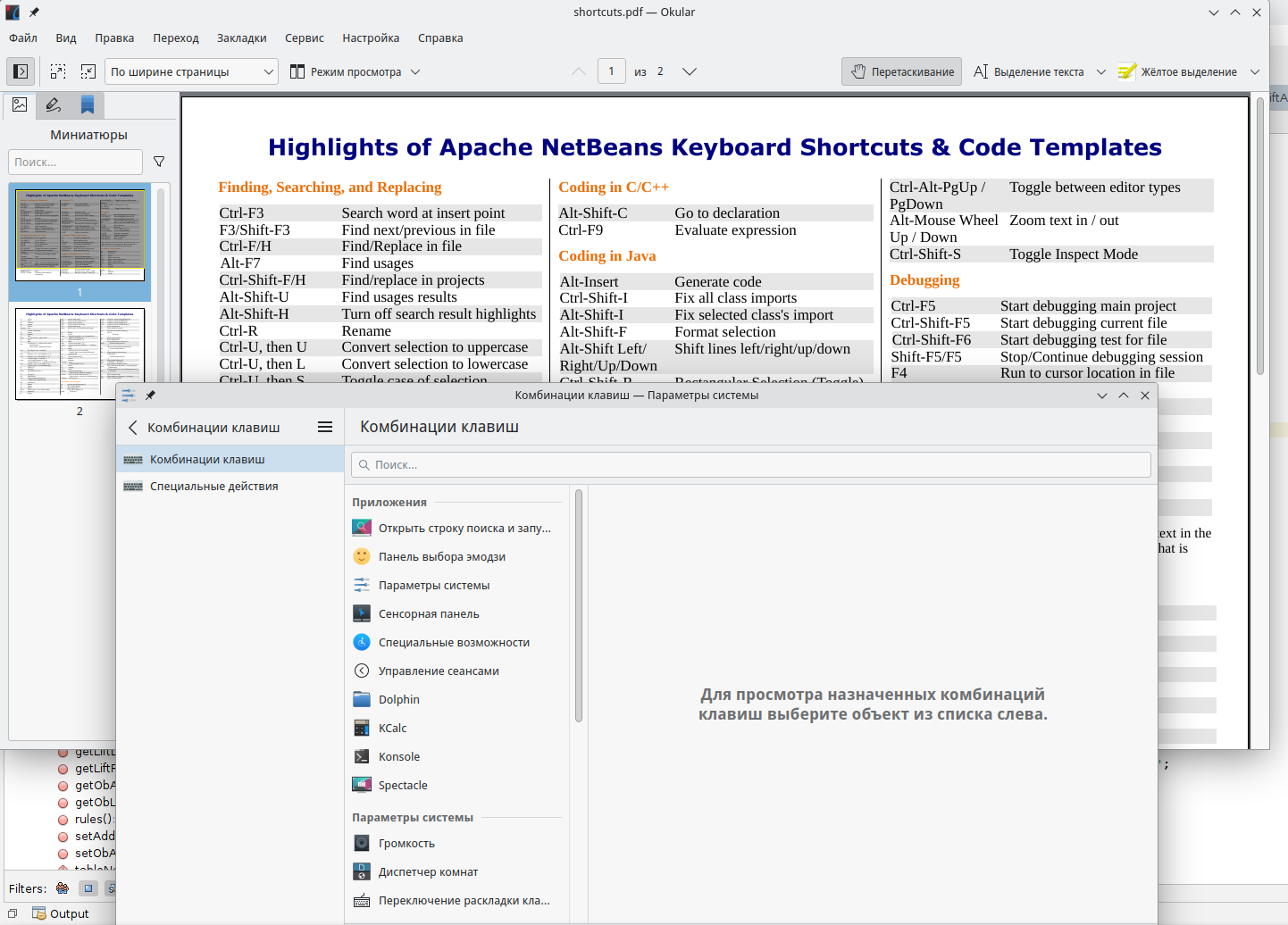 Комбинации клавиш