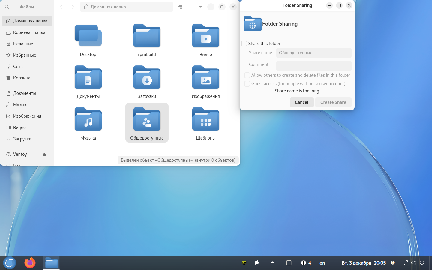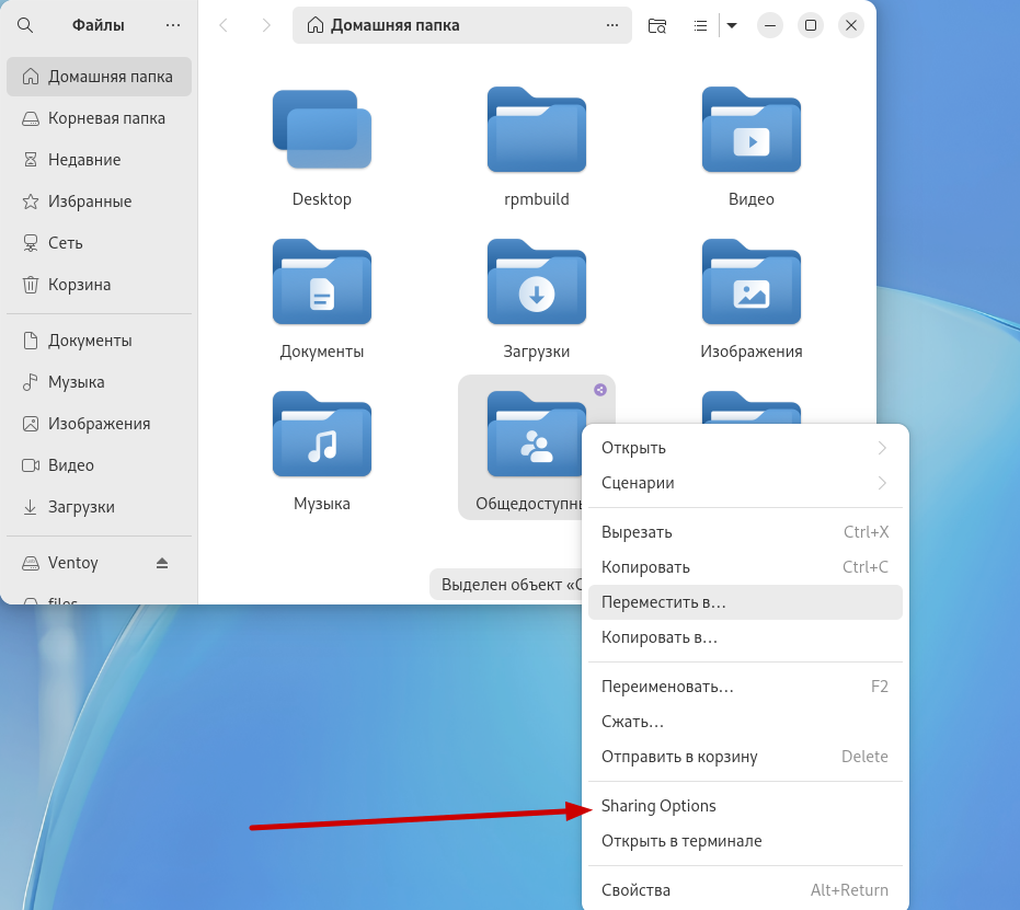 На GNOME 12.5.1 добавляешь себя в группу. Но расшарить получается только через терминал net usershare add --long Общедоступные ~/Общедоступные "comment" "Everyone:f" guest_ok=y