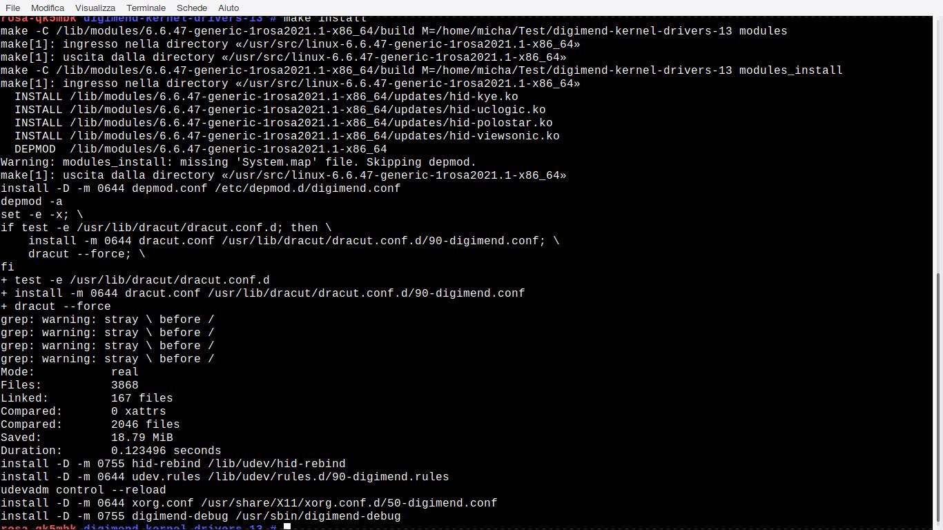 Suggerisco di aggiungerlo, è già presente, ad esempio, in Debian (https://packages.debian.org/en/sid/digimend-dkms) e Mageia (https://mageia.pkgs.org/cauldron/mageia ... h.rpm.html).