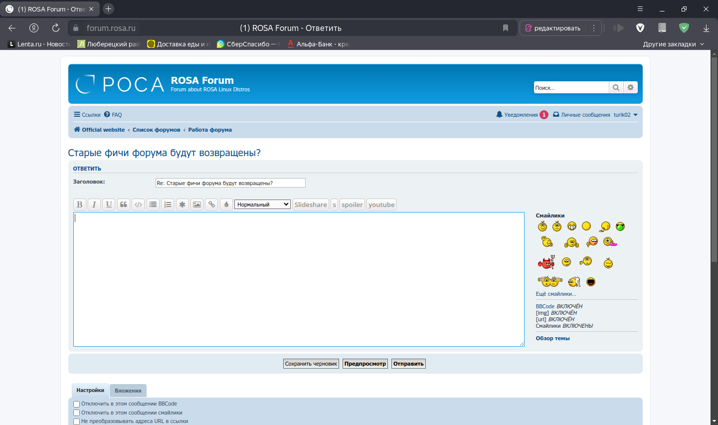 va9(2) писал(а): 08 фев 2025, 07:34 2. В темах пропал плавающий и с нормальным функционалом редактор сообщений, вместо него теперь неудобный огрызок.