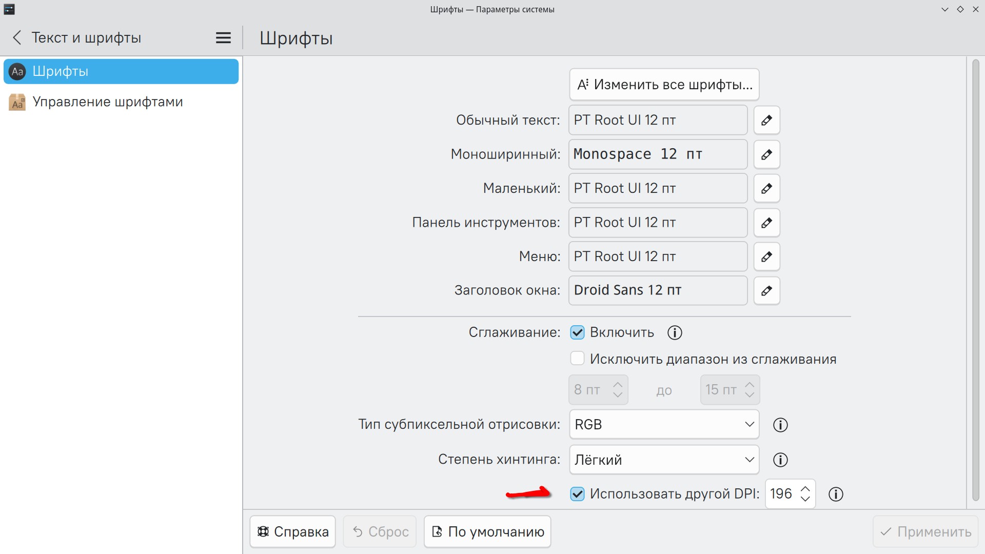 Plasma 6 x11 Изменение параметра Использовать другой DPI" ни к чему не приводит даже после завершения сеанса пользователя и повторного входа в систему. Размер шрифтов не меняется.