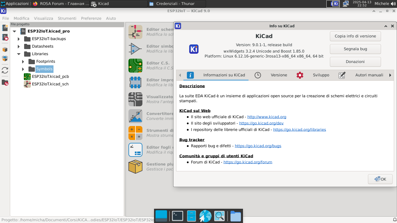 Sto usando Kicad 9.0.1 in Rosa13 senza alcun problema.