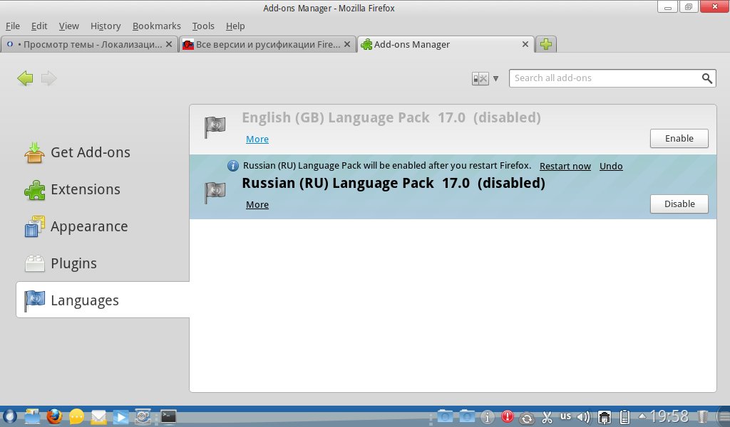 Откройте страницу со ссылками на русификации. Щёлкните кнопкой мыши по ссылке на русификацию для её установки. При появлении панели запроса на установку программного обеспечения с сайта www.mozilla-russia.org нажмите на кнопку «Allow».alexxcompany писал(а):Почему после установки ROSA Marathon по умолчанию английская Локализация Firefox?