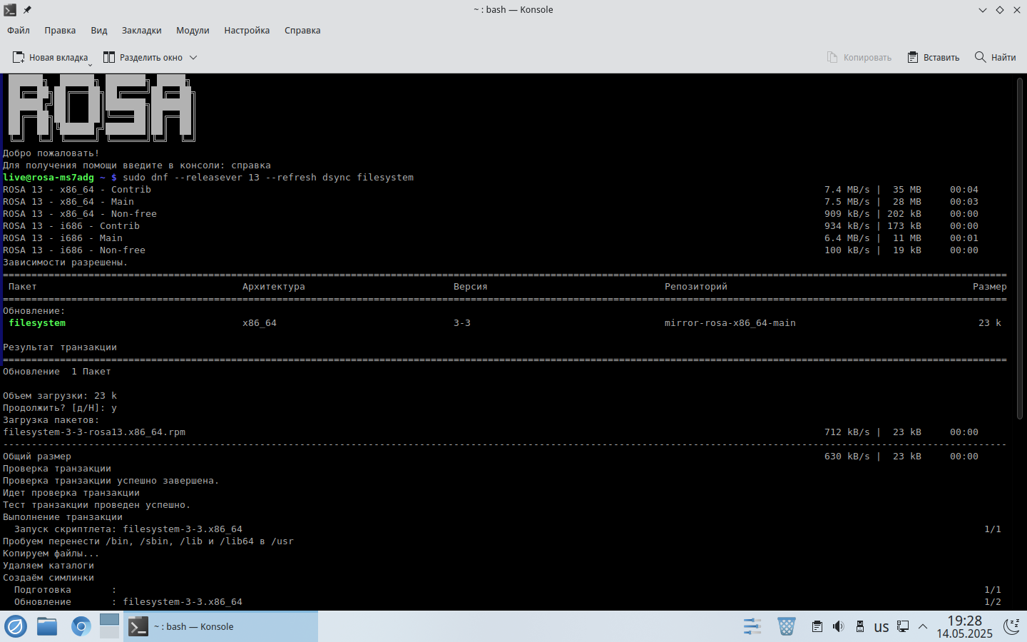 https://forum.rosa.ru/viewtopic.php?p=119465#p119465ssslm писал(а): 12 май 2025, 11:25 Мое предположение, Richard хотел обновить Rosa 12-ю до 13-й. Меня это тоже интересует. Возможно такое обновление сейчас?