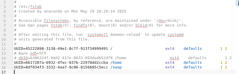 ssslm писал(а): 21 май 2025, 14:20 В fstab раздел назначен: