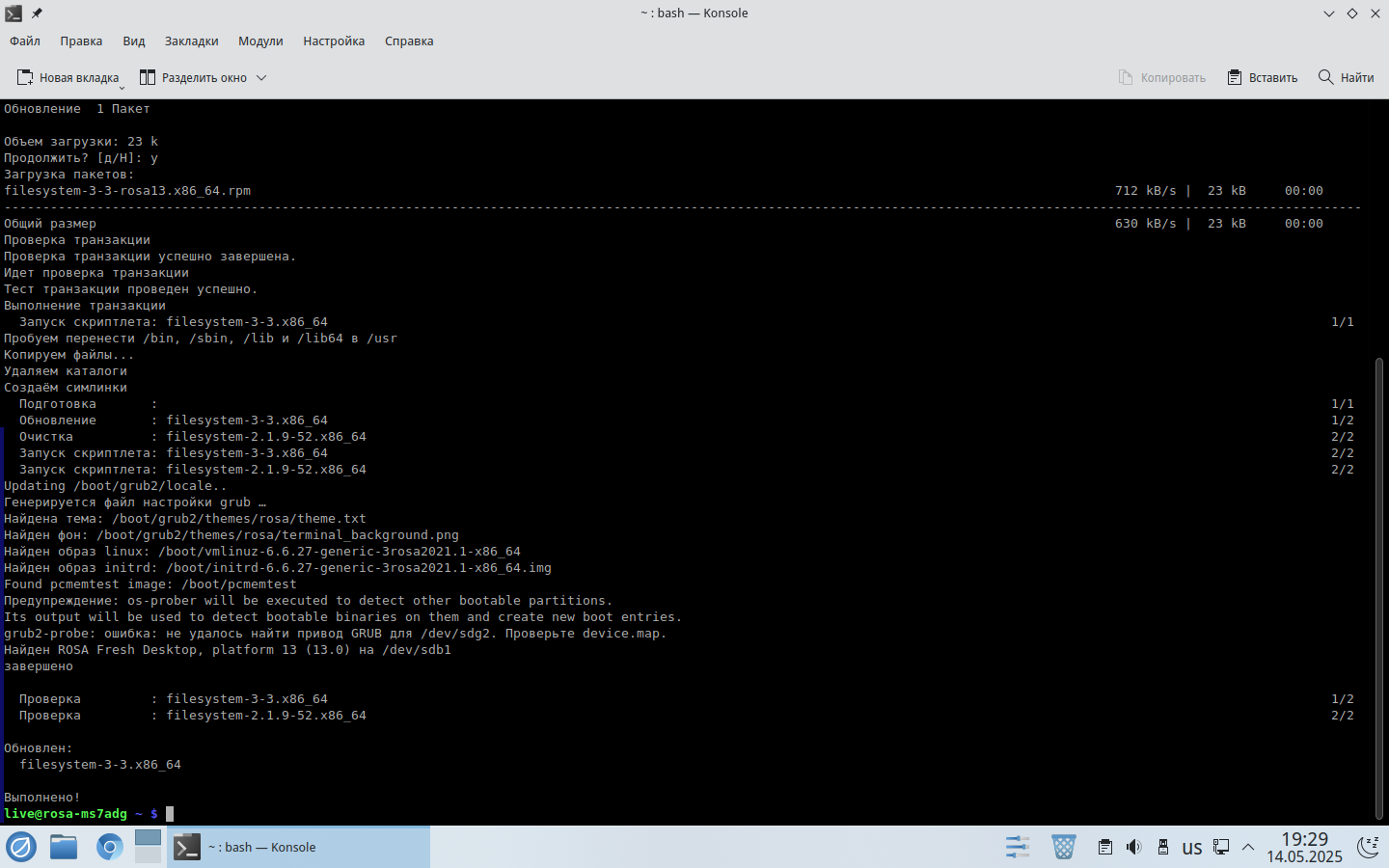 https://forum.rosa.ru/viewtopic.php?p=119465#p119465ssslm писал(а): 12 май 2025, 11:25 Мое предположение, Richard хотел обновить Rosa 12-ю до 13-й. Меня это тоже интересует. Возможно такое обновление сейчас?