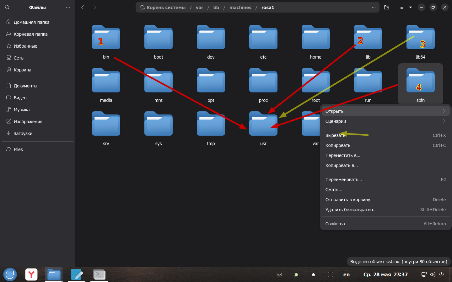 По первоначальному сценарию я их перенёс в /usr.turik02 писал(а): 29 май 2025, 22:40И?bbv62 писал(а): 29 май 2025, 22:31 У тебя было написано: "В корне удалить папки bin, lib, lib64, sbin (в /usr/ их не трогаем). Потом скачать архив, распаковать его и скопировать содержимое..."