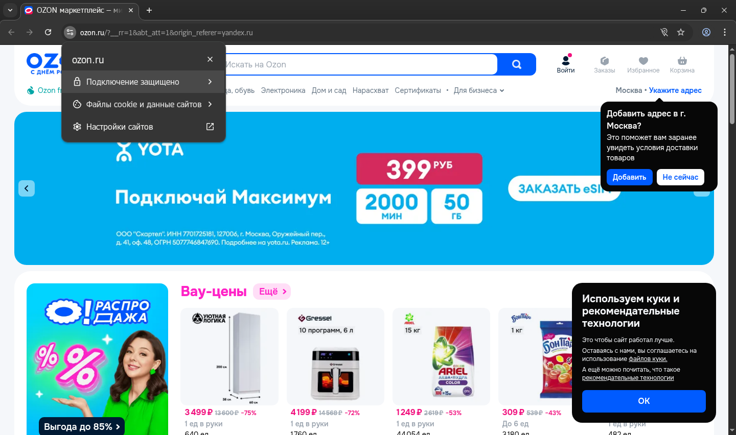 Стрница Озон не открывается "совершено слишком много переадресаций"