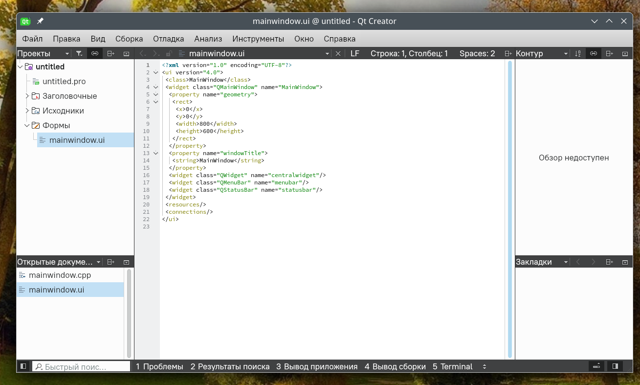 Устанавливаю Qt creator, запускаю его, создаю новый проект с формой. Кнопка Design неактивна.