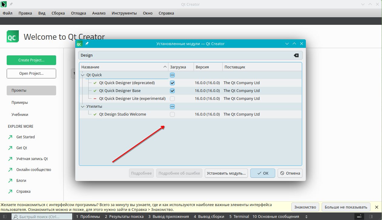 Справка - Модули - QtCreator и Qt Quick все подключены.