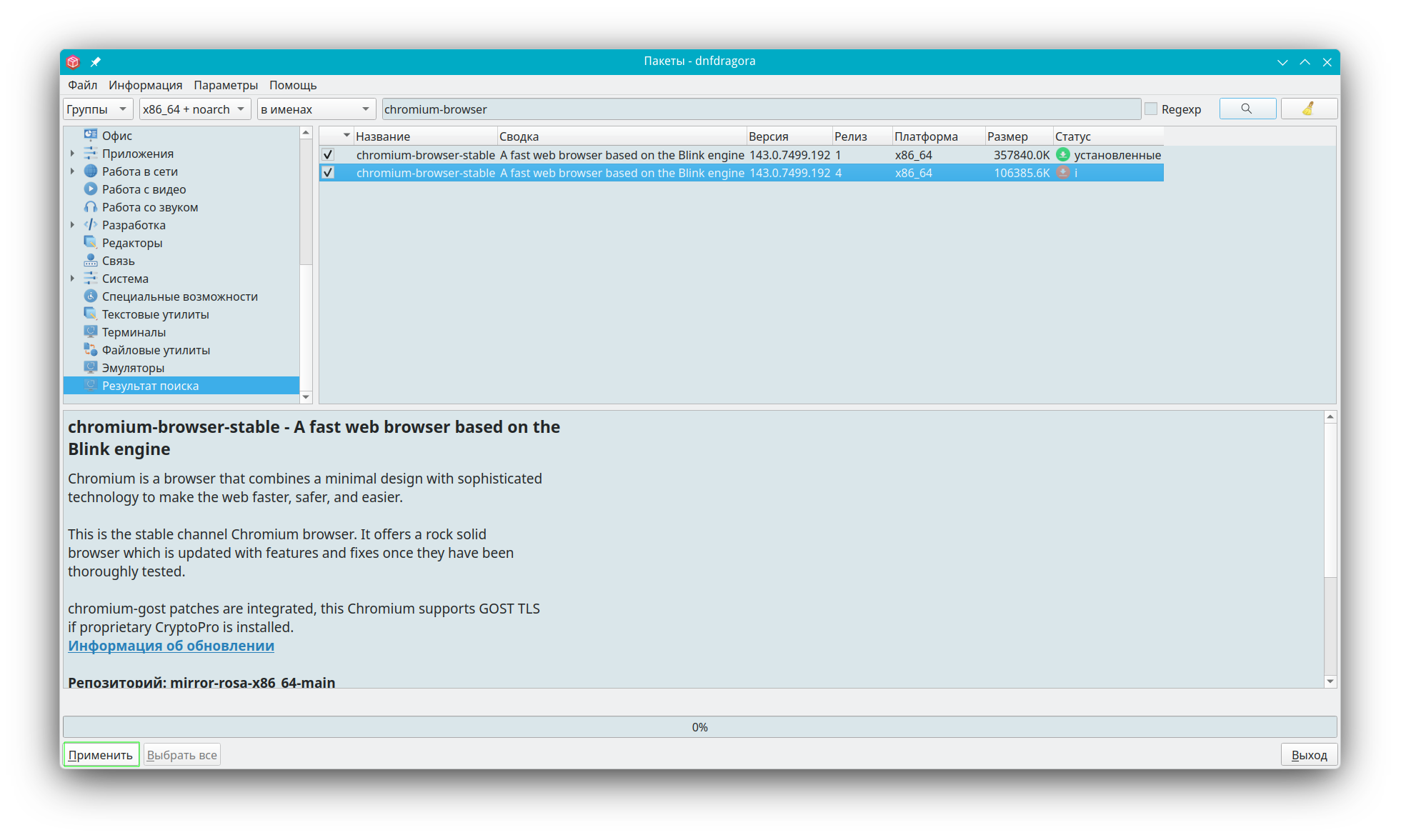 О систее: если запускать через пуск, менеджер пакетов то в правом нижнем углу всплывает окно