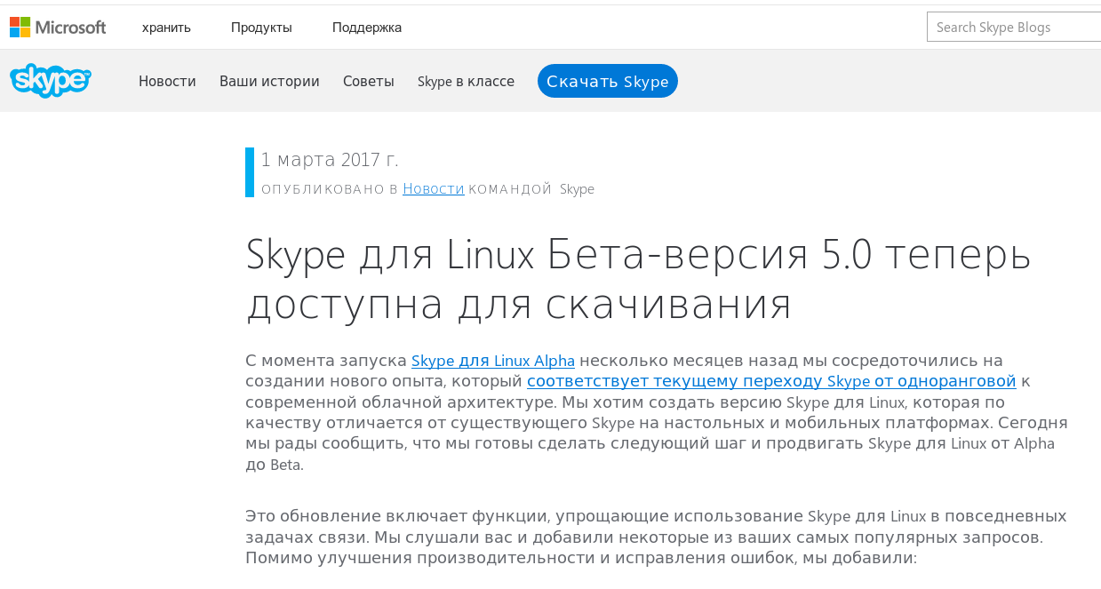 Напомним, что в феврале некоторые пользователи Skype 4.3 для Linux получили уведомление о прекращении поддержки классического клиентского ПО начиная с первого марта, но позднее сотрудники Microsoft опровергли эту информацию сославшись на ошибку в рассылке. Но в итоге, оказалось, что компания Microsoft лишь на 4 месяца отложила прекращение поддержки Skype 4.3 для Linux.