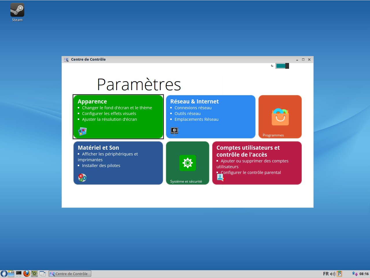 Une petite capture montrant le magnifique Centre de Contrôle LXDE