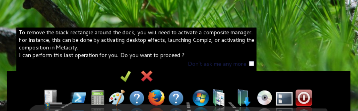 " Window manager capable of showing transparent windows" - Get the first run, and save the configuration Cairo-Dock