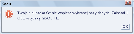 When you start Kadu - appears "It seems your Qt library does not provide support for selected database. Please install Qt with QSQLITE plugin".
