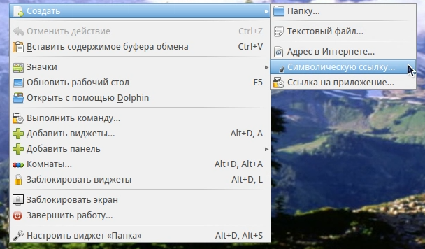 Вроде на заднем плане рабочий стол и на нем не нашел возможность создать симлинк.