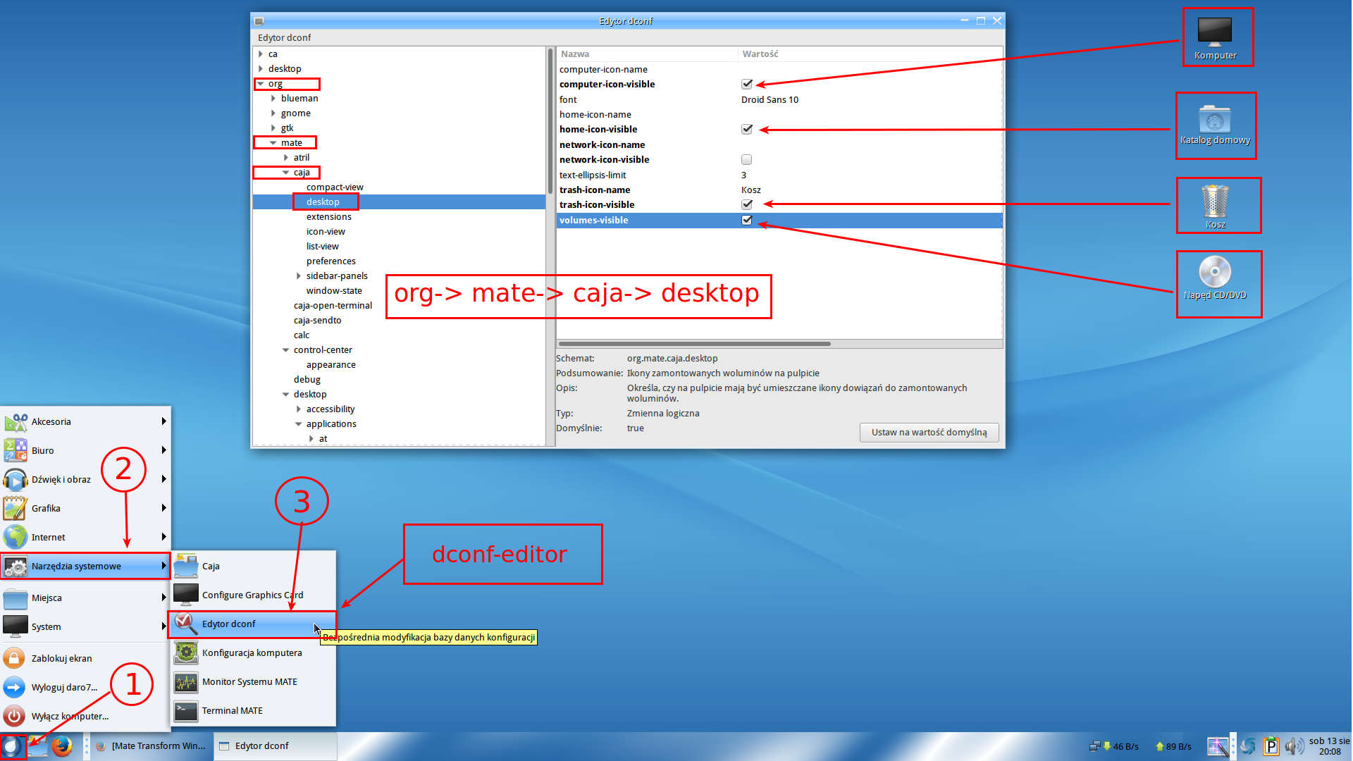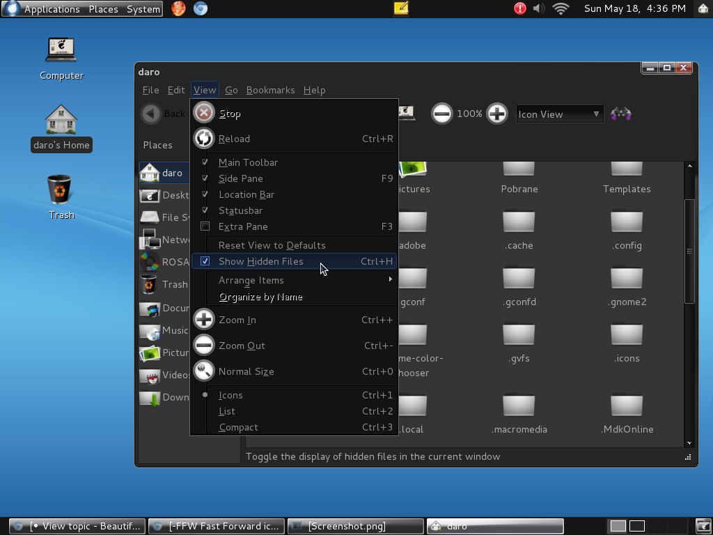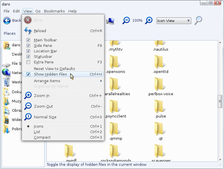 Home directory -> View -> Show hidden files -> .piedockrc