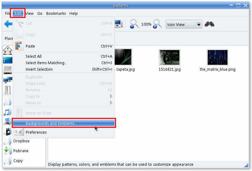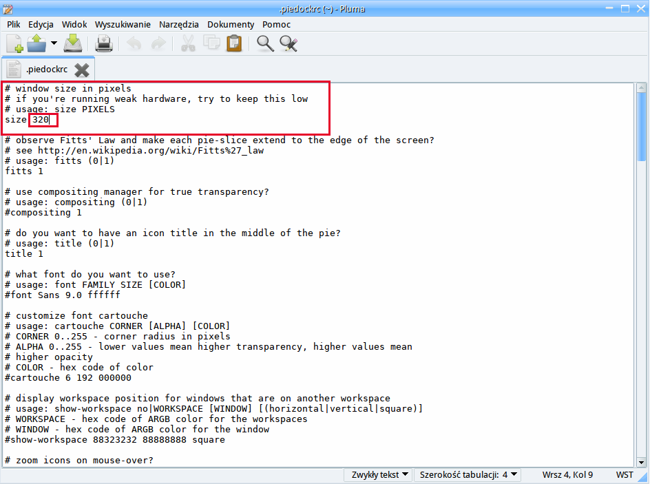 Menu Piddock, we can change through, edit the file named ".piedockrc"