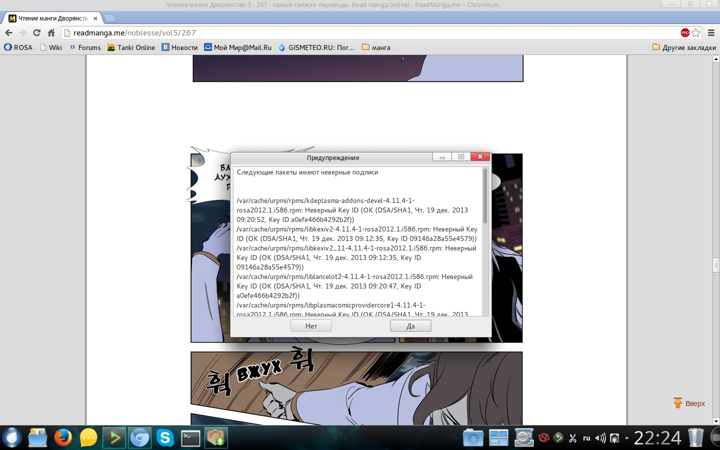 только что скачались обновления кде 4.11.4. И после скачки и проверки пакетов система выдала что у пакетов неверная подпись , это как понимать? пакеты в репах что ли левые? да добавил снимок экрана это уже второе такое предупреждение за сегодняшнее обновление кде.