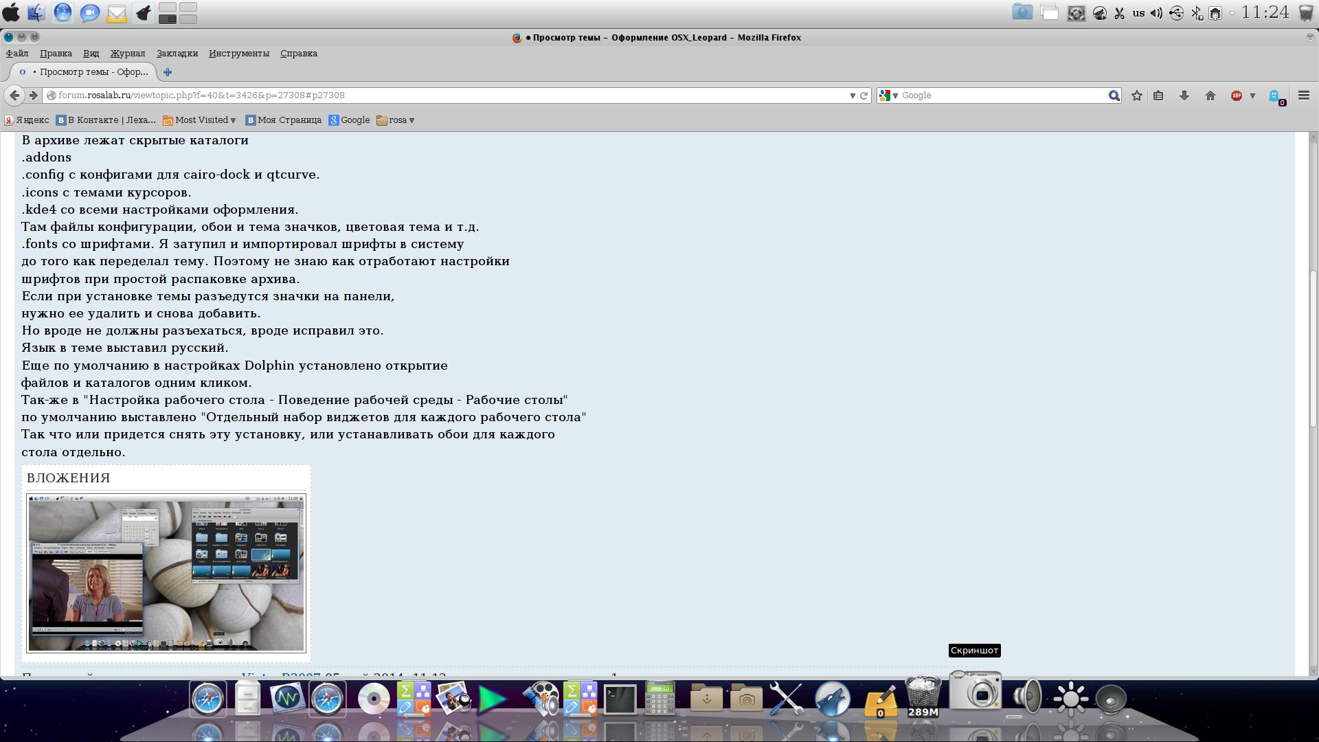 Где шрифт Lucida Grande? А со сглаживанием повозиться? Где menubar сверху? Где тема Leopard под Emerald, прикрученная через Smaragd? Почему значки неконсистентные?