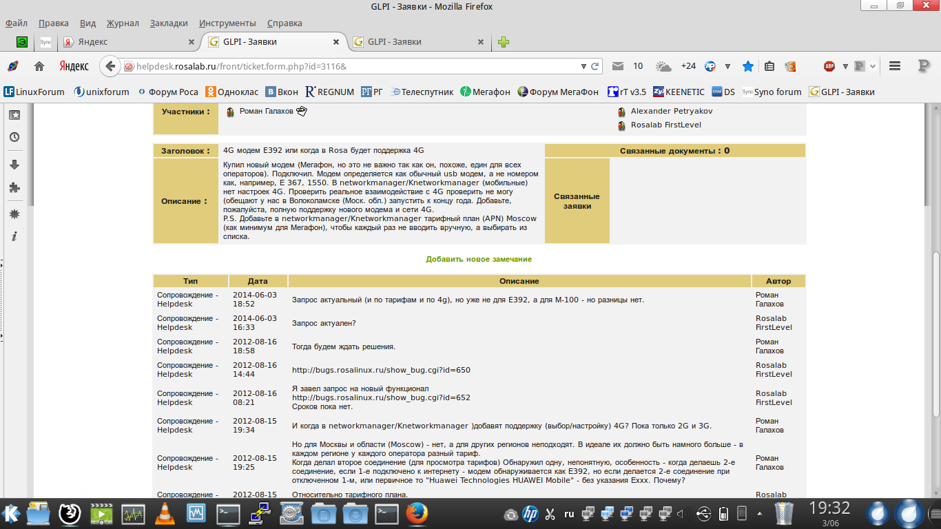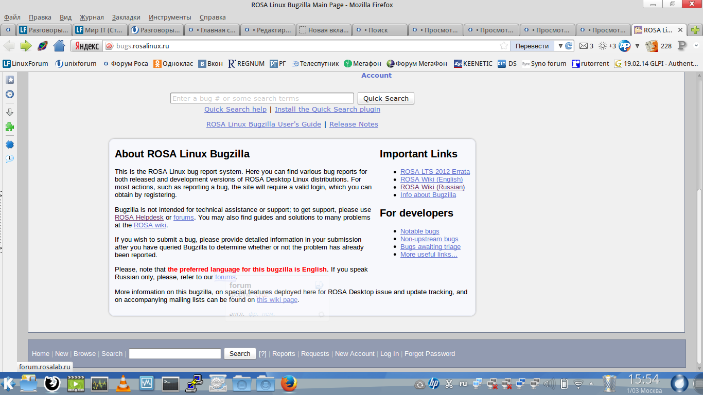 http://forum.rosalab.ru/viewtopic.php?f ... esk#p12543PastorDi писал(а):Нет. Яж говорю, миграция на Багзиллу. Желательно все свои заявки на helpdesk перевести в Багзиллу, дабы не потерялись.