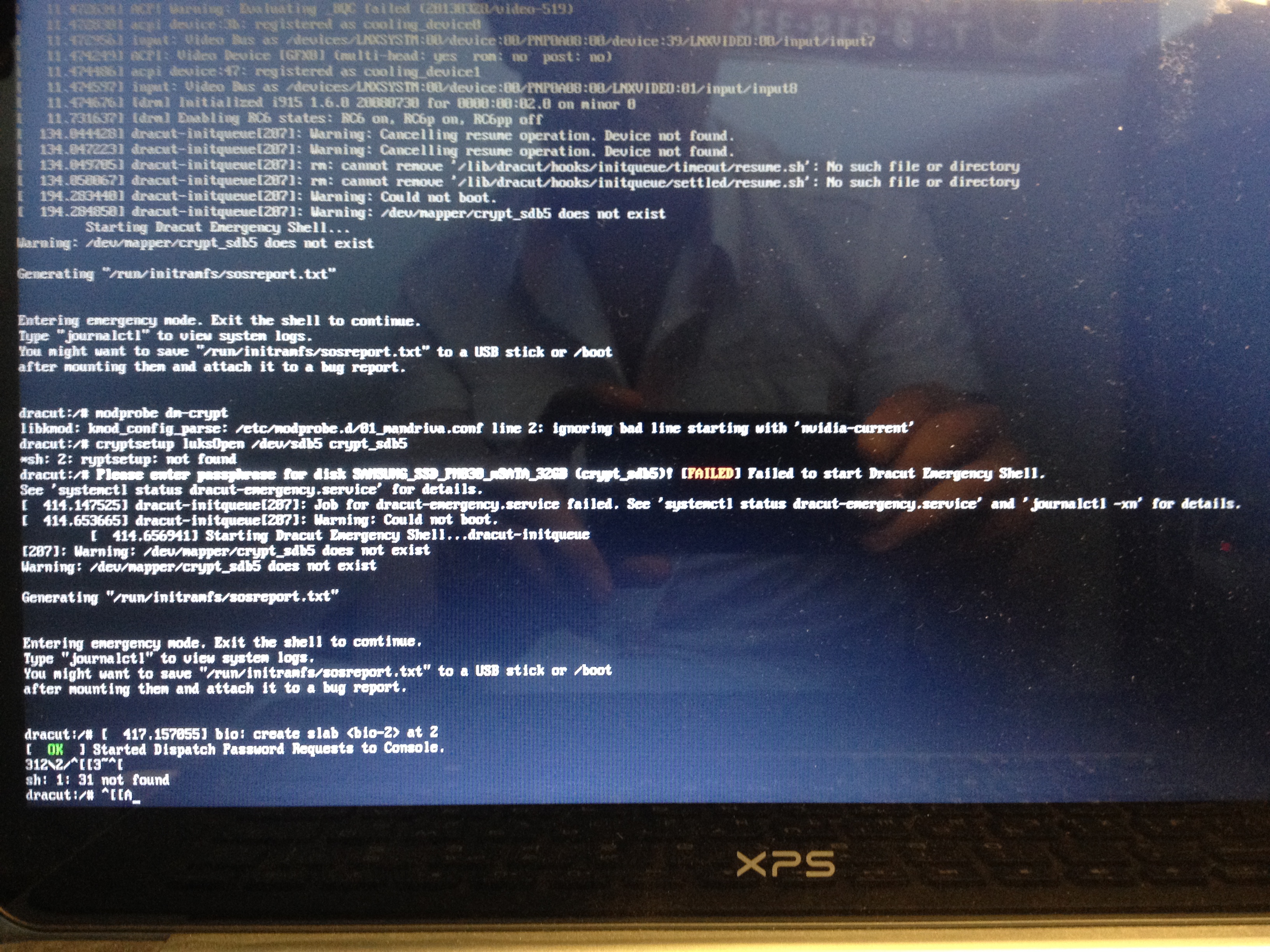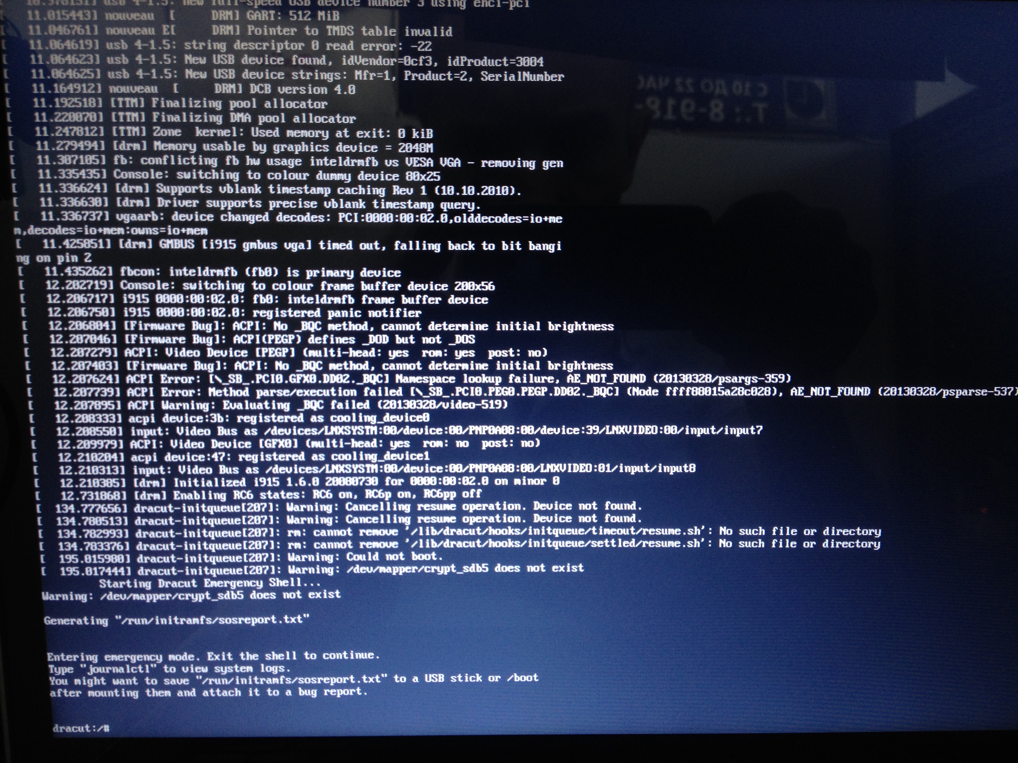Вообщем когда есть хоть один шифрованый раздел ДРАКУТ встает с ошибками.