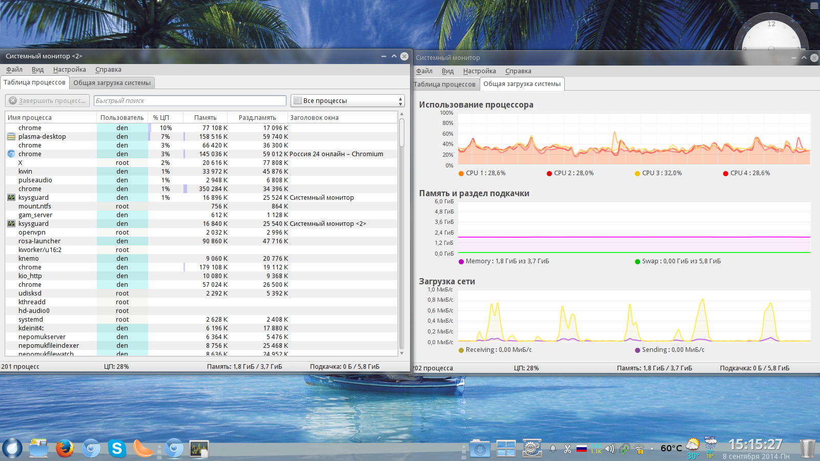 Видео музыка браузер все нормально но стоит попасть в момент загрузки процессора нет отклика при нажатии на иконки, свойство раб. стола, переход да другой раб.стол...... на все куда можно зайти с панели.....То одно то другое ядро грузится.....