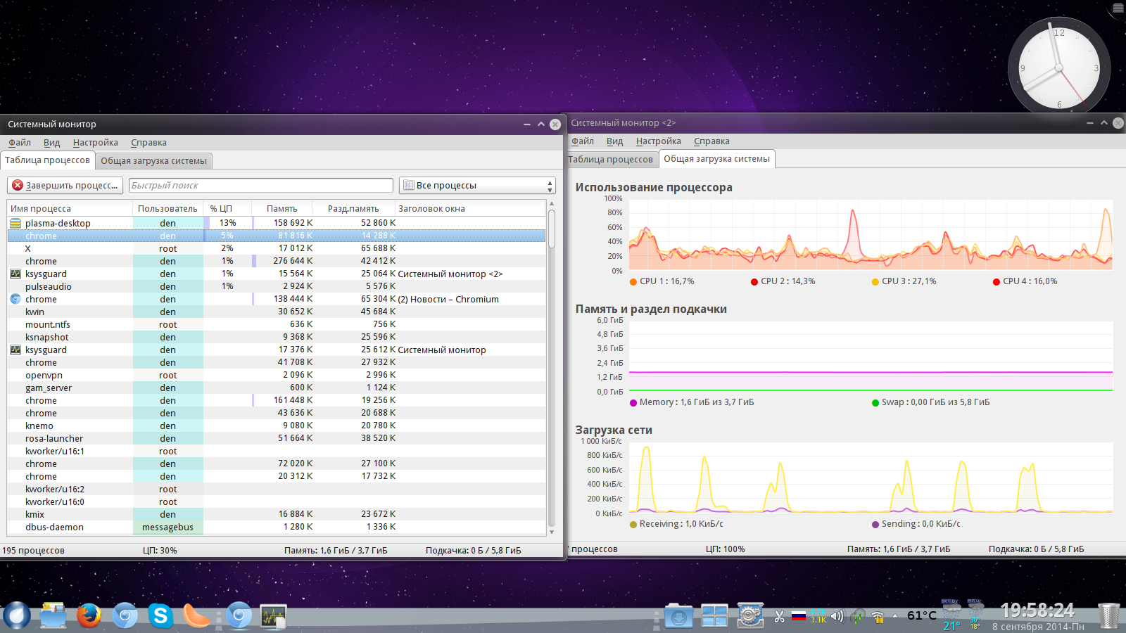 Роса ФРЕШ R3, 32 бит, всё стандартно, только ядро 3.13.11.