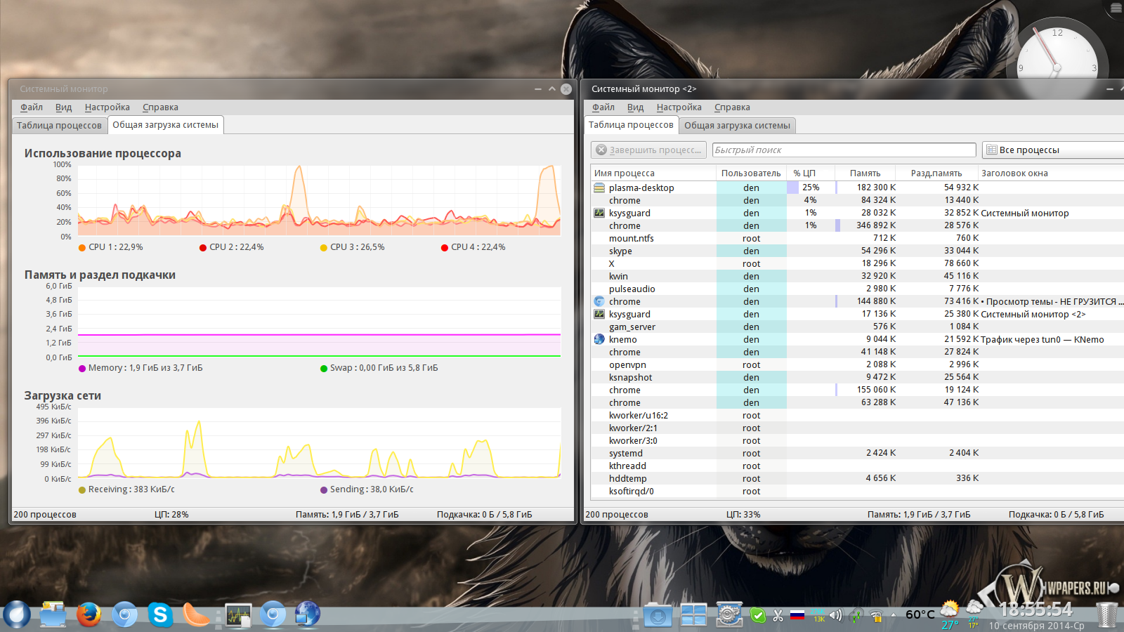 DKU писал(а):по системному монитору в момент пика загрузки процессора всегда вылетает на первый план процесс plasma-desktop