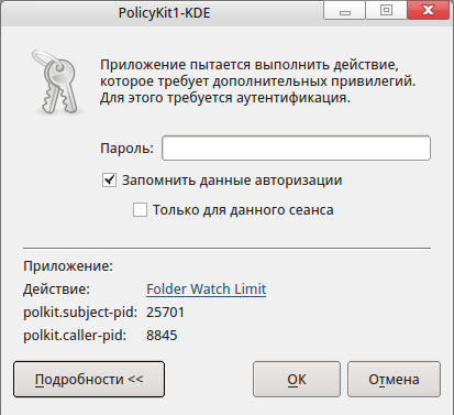 Re: Выскакивает окошко PolicyKit1-KDE