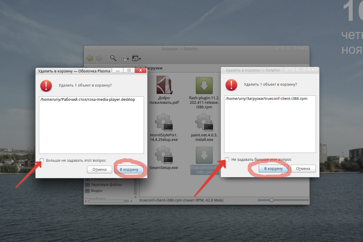 Pulfer, ярлык или файл надо удалять прямо с рабочего столаУ меня что-то вообще не воспроизводится проблема (KDE 4.14.3).